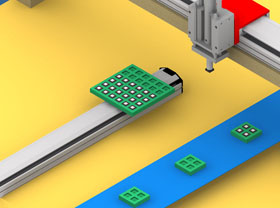 利用线性模组高定位精度之特性,在物件整列靠齐等装置中应用。